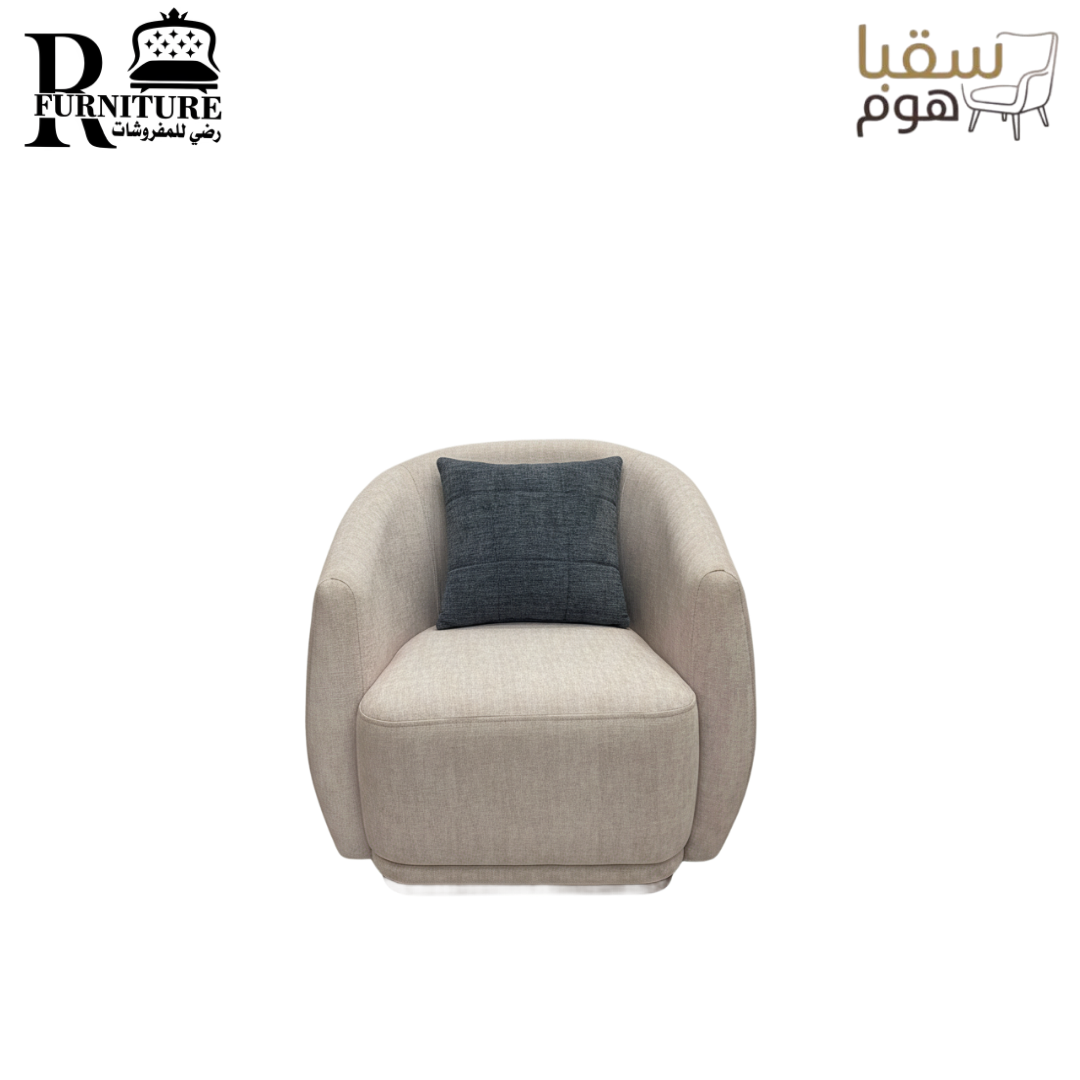 • وسائد فاخرة بألوان متناسقة (بيج، أزرق، ذهبي)