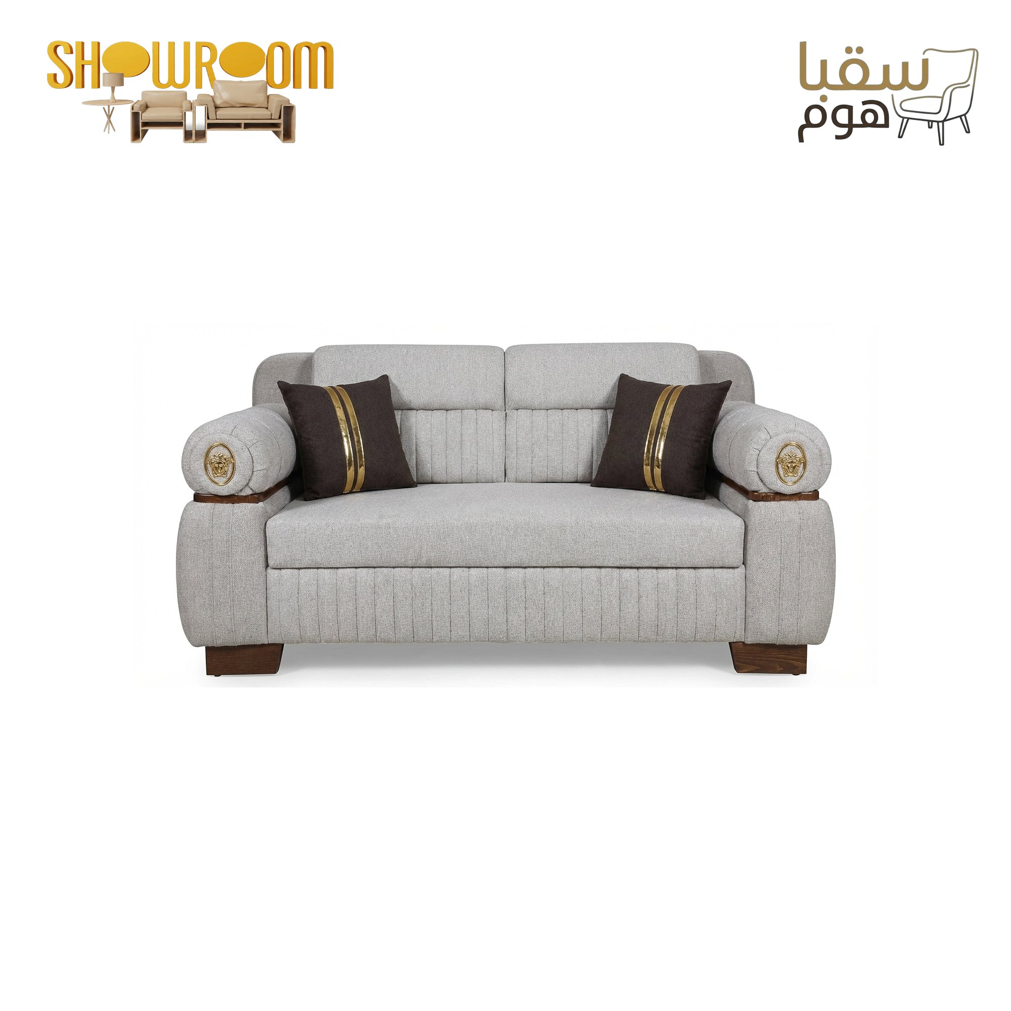 مجموعة أوريليا الفاخرة تجسد الرقي والبذخ بتصميمها العصري الفريد. اللون البيج الفاتح الهادئ مع التفاصيل الذهبية البراقة يمنح منزلك جواً من الفخامة الملكية. التنجيد الأنيق بتقنية Channel Tufting مع المساند الأسطوانية المميزة يضيف لمسة من الأناقة الكلاسيكية العصرية.