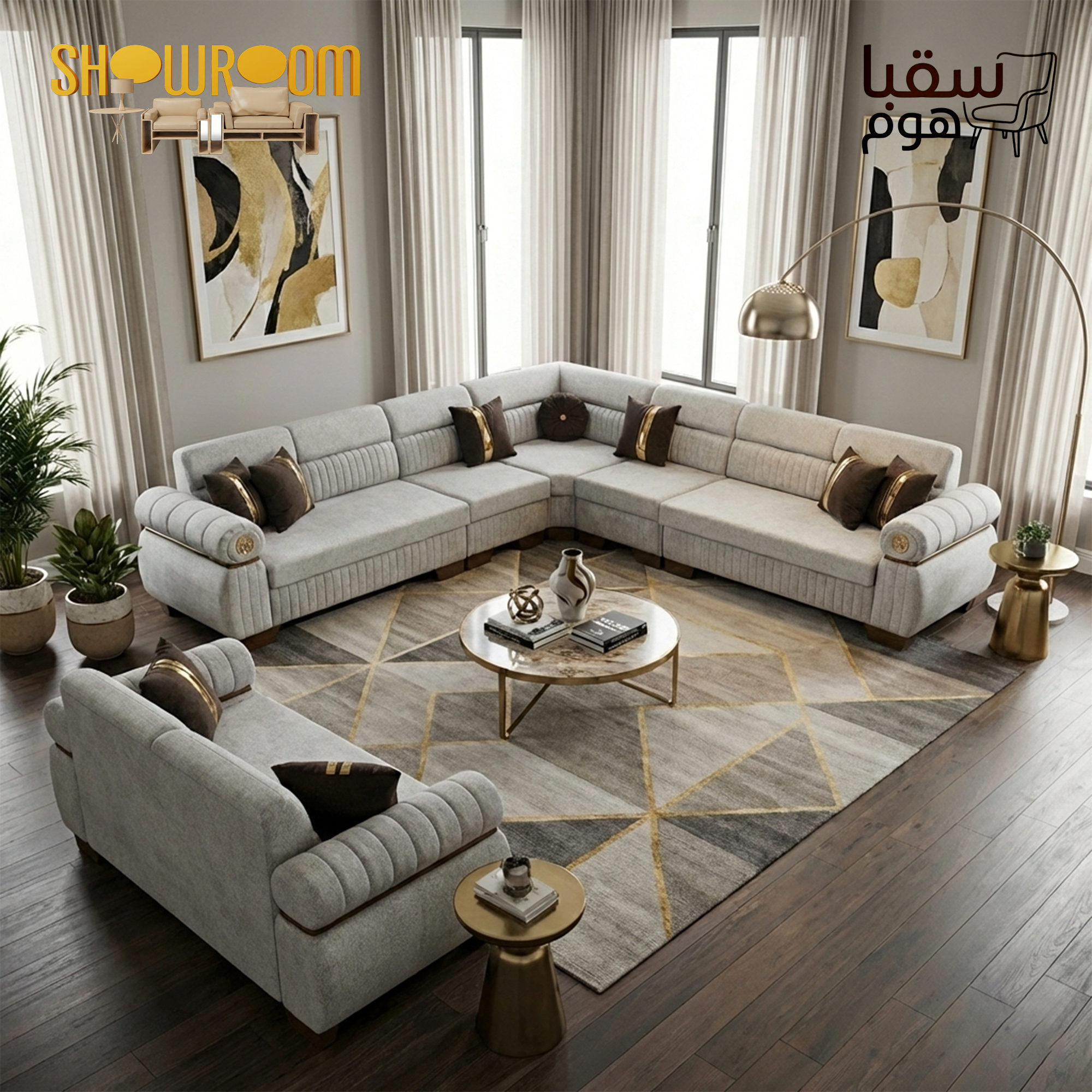 • تصميم L-Shape واسع وفاخر يناسب المساحات الكبيرة