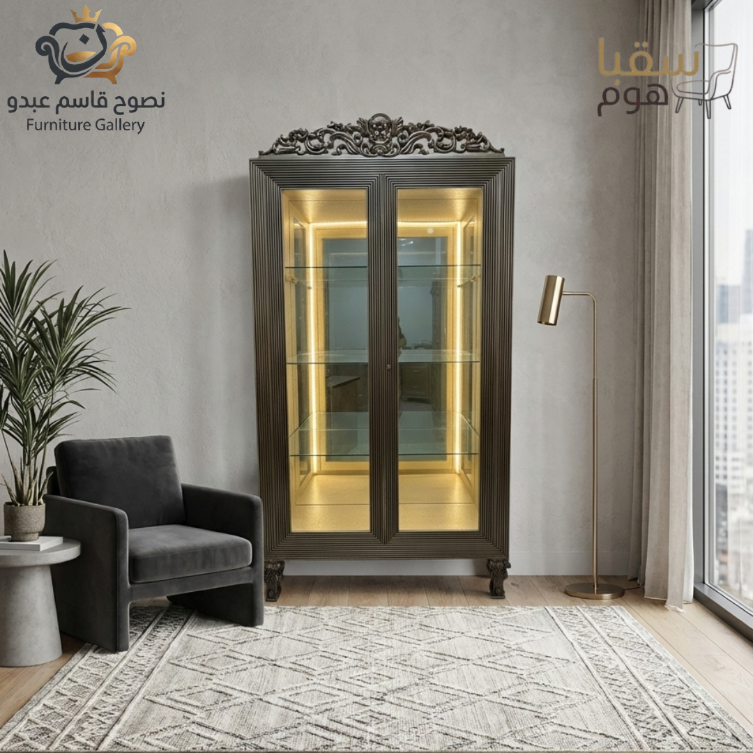 فيترينة عرض استثنائية بتصميم نيوكلاسيك فاخر، تجمع بين أصالة التفاصيل الكلاسيكية وعصرية الإضاءة المدمجة.