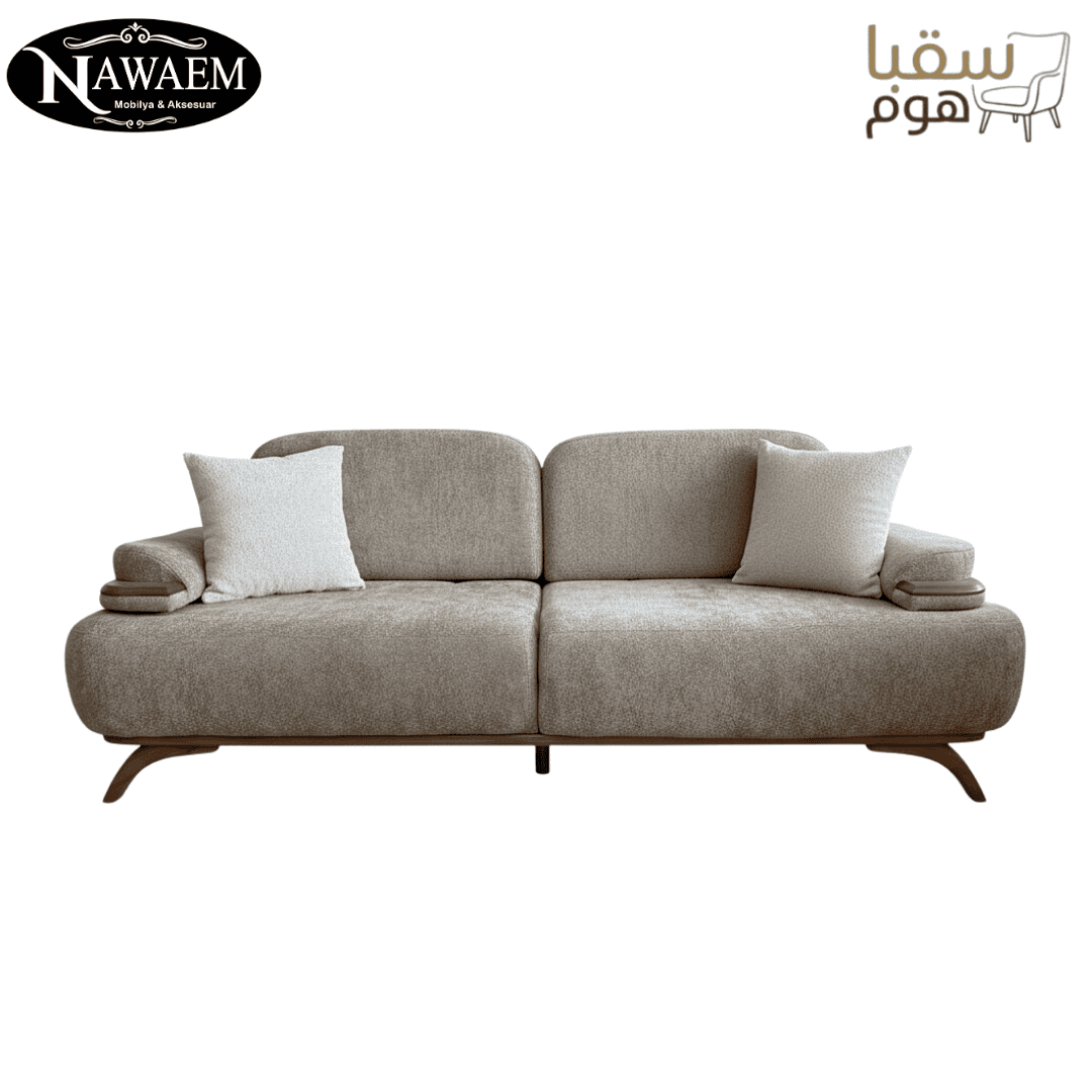 🪵 تفاصيل خشبية أنيقة: أرجل ومساند ذراعين من الخشب الطبيعي بلون دافئ يضفي لمسة طبيعية