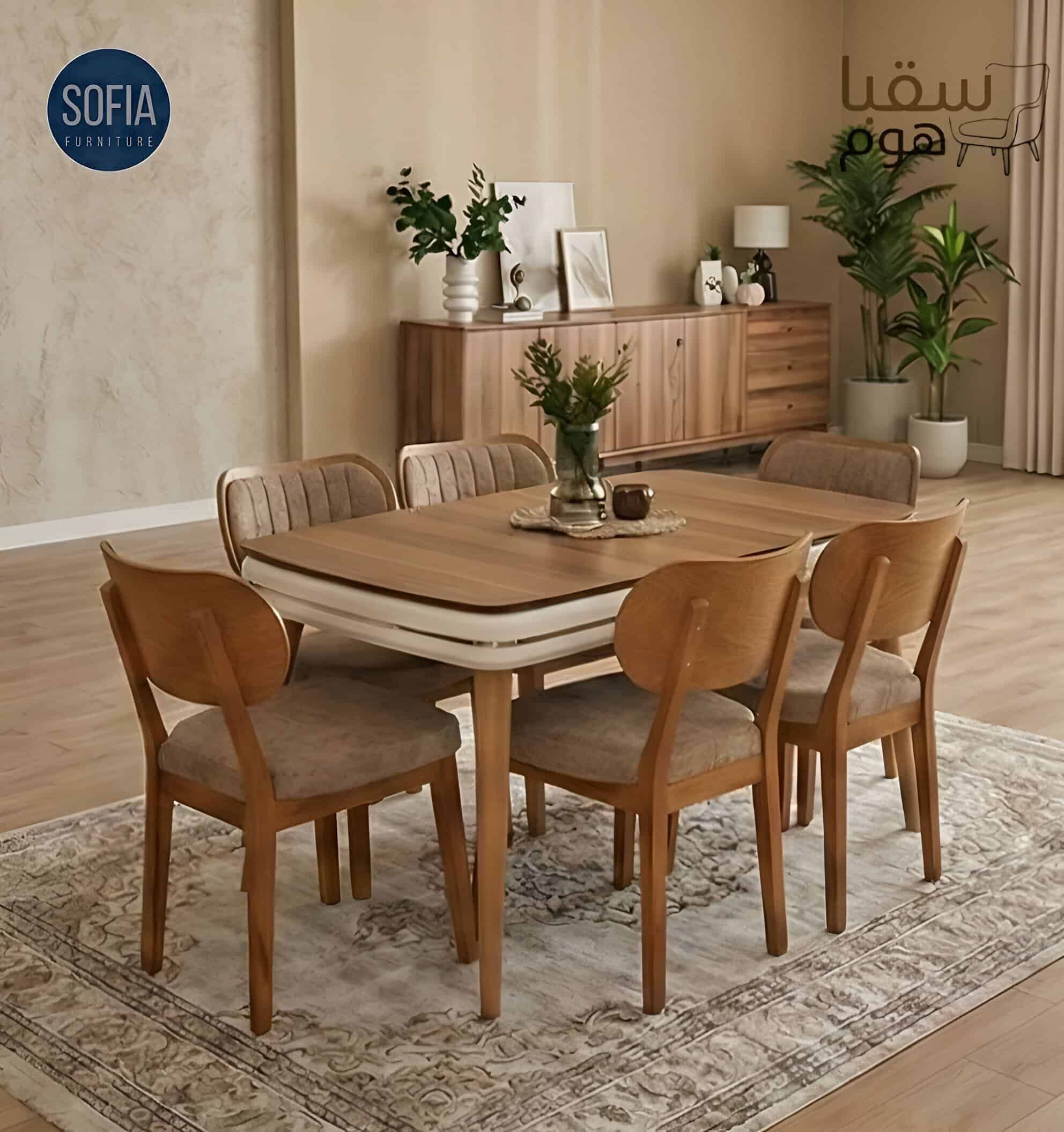 طقم سفرة مصمم لمن يؤمن أن الوجبات ليست مجرد أكل… بل هي لحظات تجمع، حوار، وذكريات. خشب طبيعي بملمس دافئ، مقاعد مبطنة براحة فاخرة، وطاولة قابلة للتمديد لتستقبل ضيوفك دون عناء.