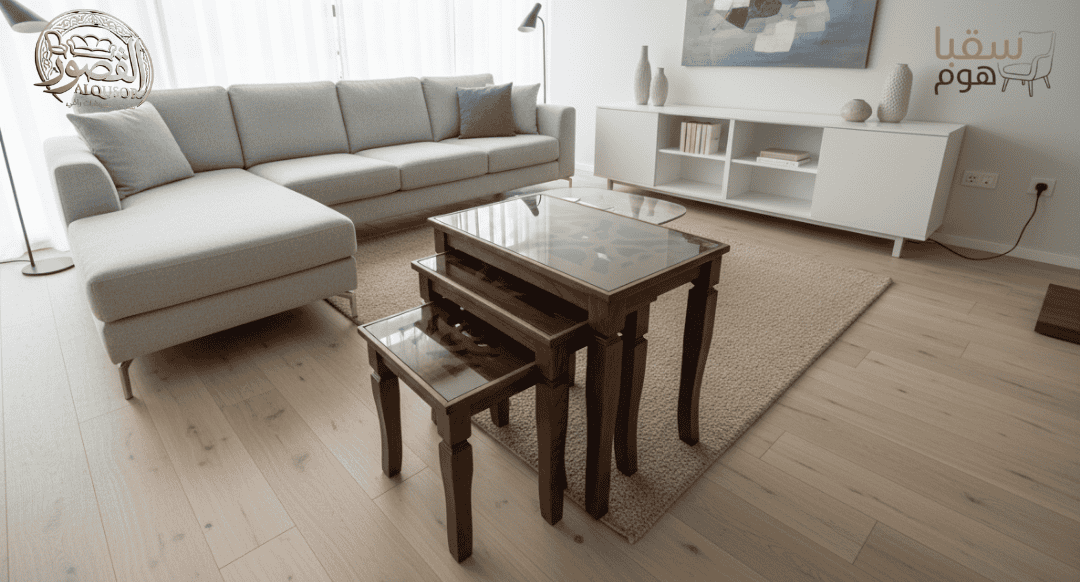 اكتمل جمال غرفة معيشتك مع طقم الطاولات الجانبية الأنيق والعملي. صُممت لتكون رفيقك المثالي في تجمعات العائلة والأصدقاء؛ حيث يمكنك سحبها بسهولة لخدمة ضيوفك ثم إعادتها لتوفير المساحة بكل سلاسة. يمتزج لون الخشب الدافئ والزجاج اللامع مع أي لون للكنب، ليخلق توازناً بصرياً رائعاً بين العصرية والكلاسيكية. قطعة لا غنى عنها في كل منزل.”