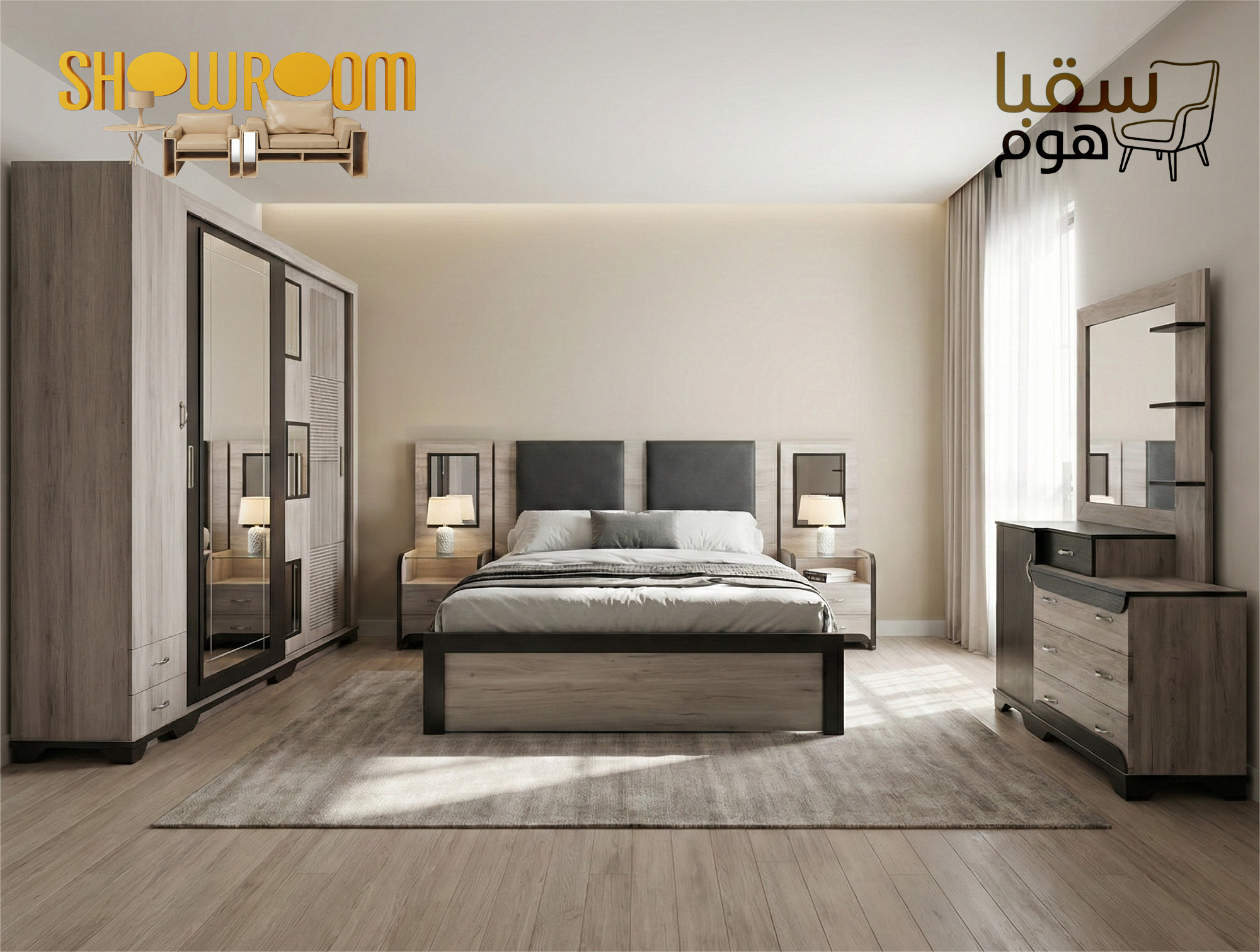 | يتضمن | التسريحة, الخزانه, السرير, الكومدينو عدد 2 |
