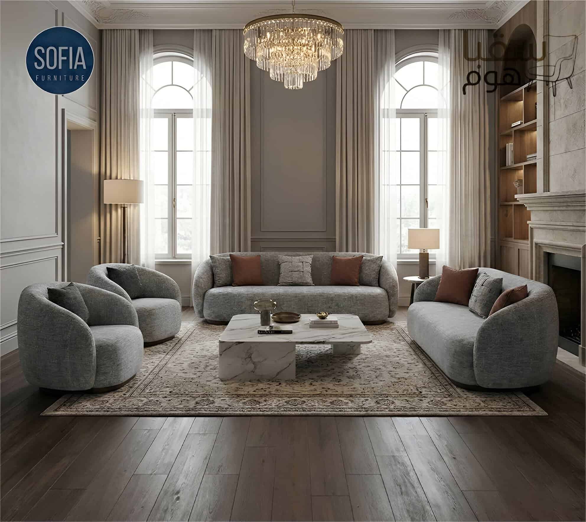 مجموعة أثاث مصممة لمن يؤمن أن الفخامة لا تحتاج إلى صخب، بل فقط إلى خطوطٍ ناعمة، وأقمشةٍ فاخرة، وألوانٍ عميقة تُشعرك بالراحة والثقة
