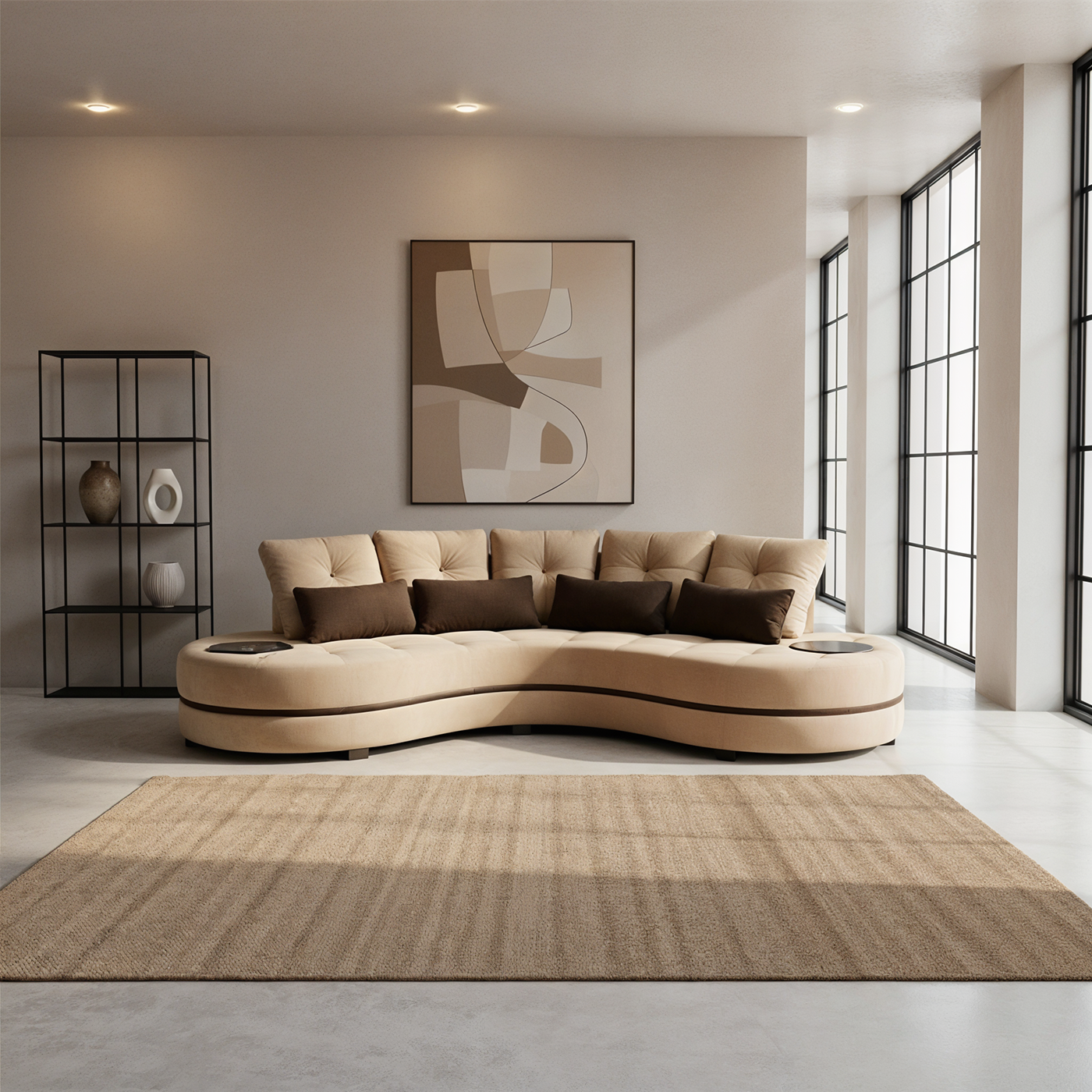 يأتي بتصميم منحني عصري مستوحى من نعومة السحب، بلون بيج دافئ يتناغم مع مختلف الديكورات الداخلية.