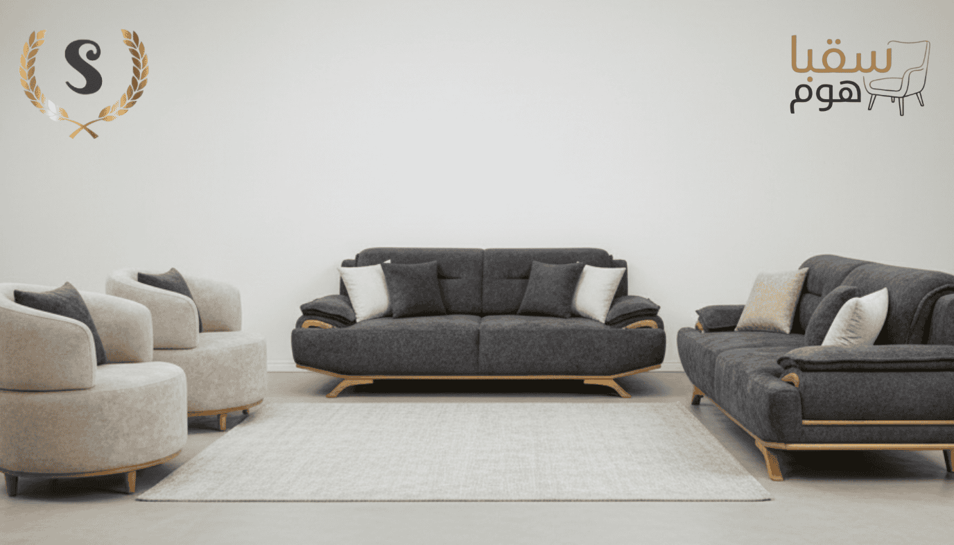 القماش الناعم بألوانه الهادئة يتناغم مع القاعدة الخشبية الطبيعية ليضفي إحساسًا بالدفء والرقي، بينما توفر الوسائد المريحة دعمًا ممتازًا للجلوس اليومي والاسترخاء.