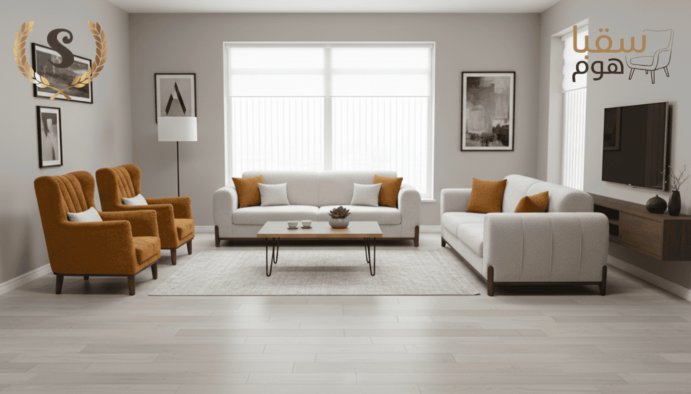 طقم وَقار يعكس الفخامة الهادئة بأسلوب عصري أنيق. تناغم الألوان المحايدة مع لمسات اللون الدافئ يمنح المكان إحساسًا بالترتيب والراحة النفسية، بينما يضيف التصميم المتوازن حضورًا راقيًا يلفت النظر دون مبالغة.
