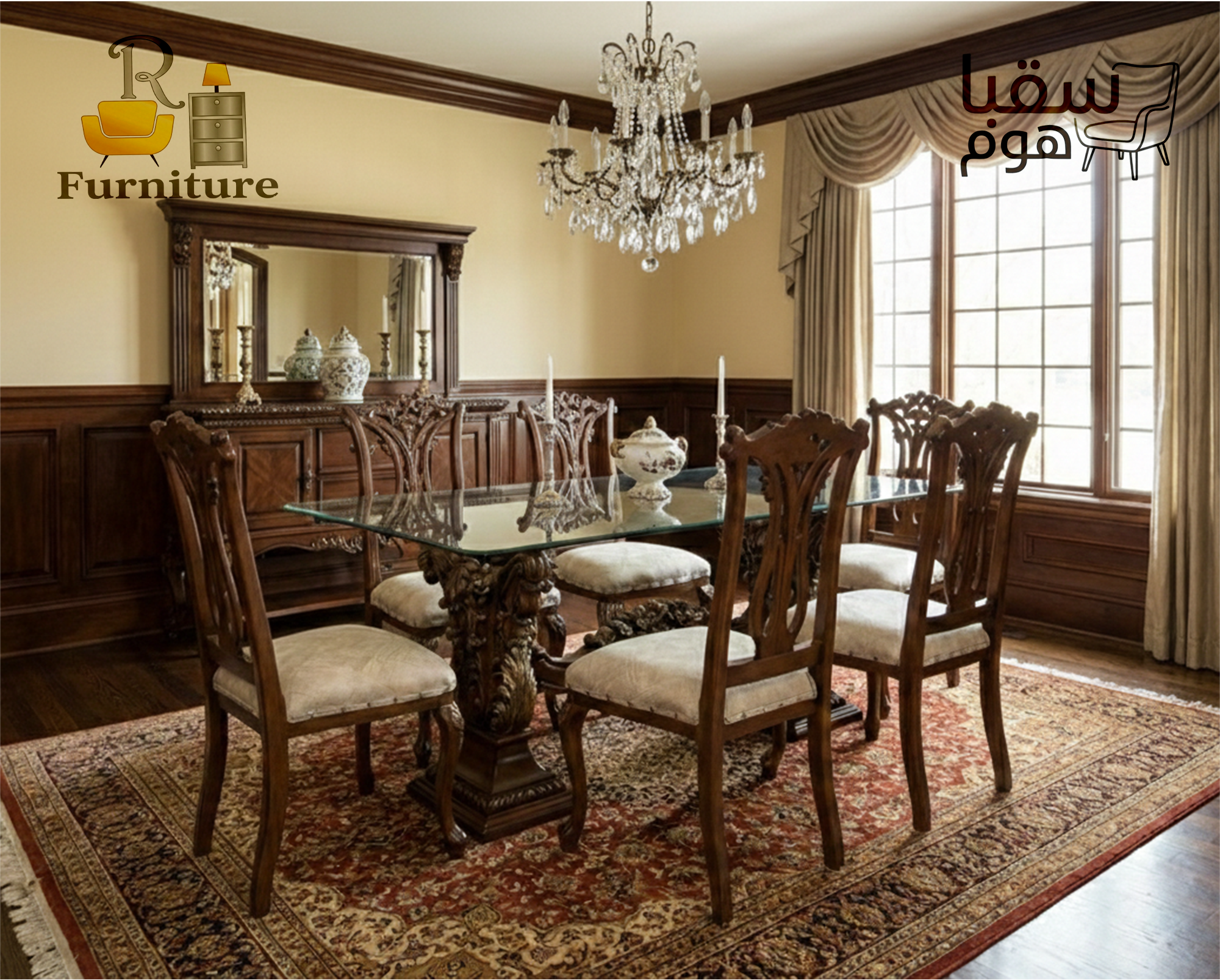 • طاولة سفرة واسعة تتسع لـ 8 أشخاص