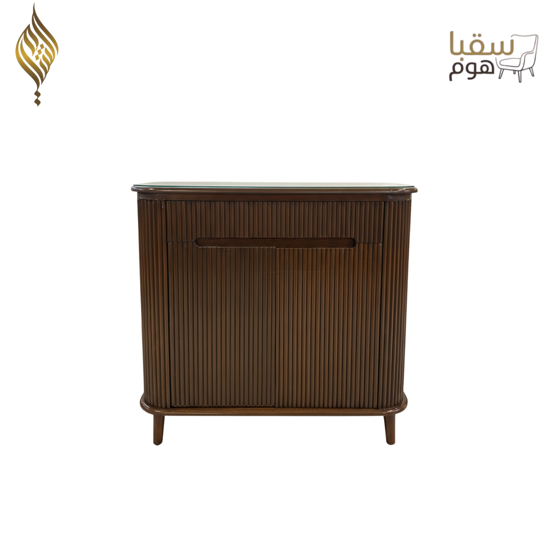 بساطة عصرية (Minimalism): تصميم خالٍ من التعقيد، يركز على الجمال الهادئ والتفاصيل الدقيقة مثل الخطوط العمودية للخزانة.