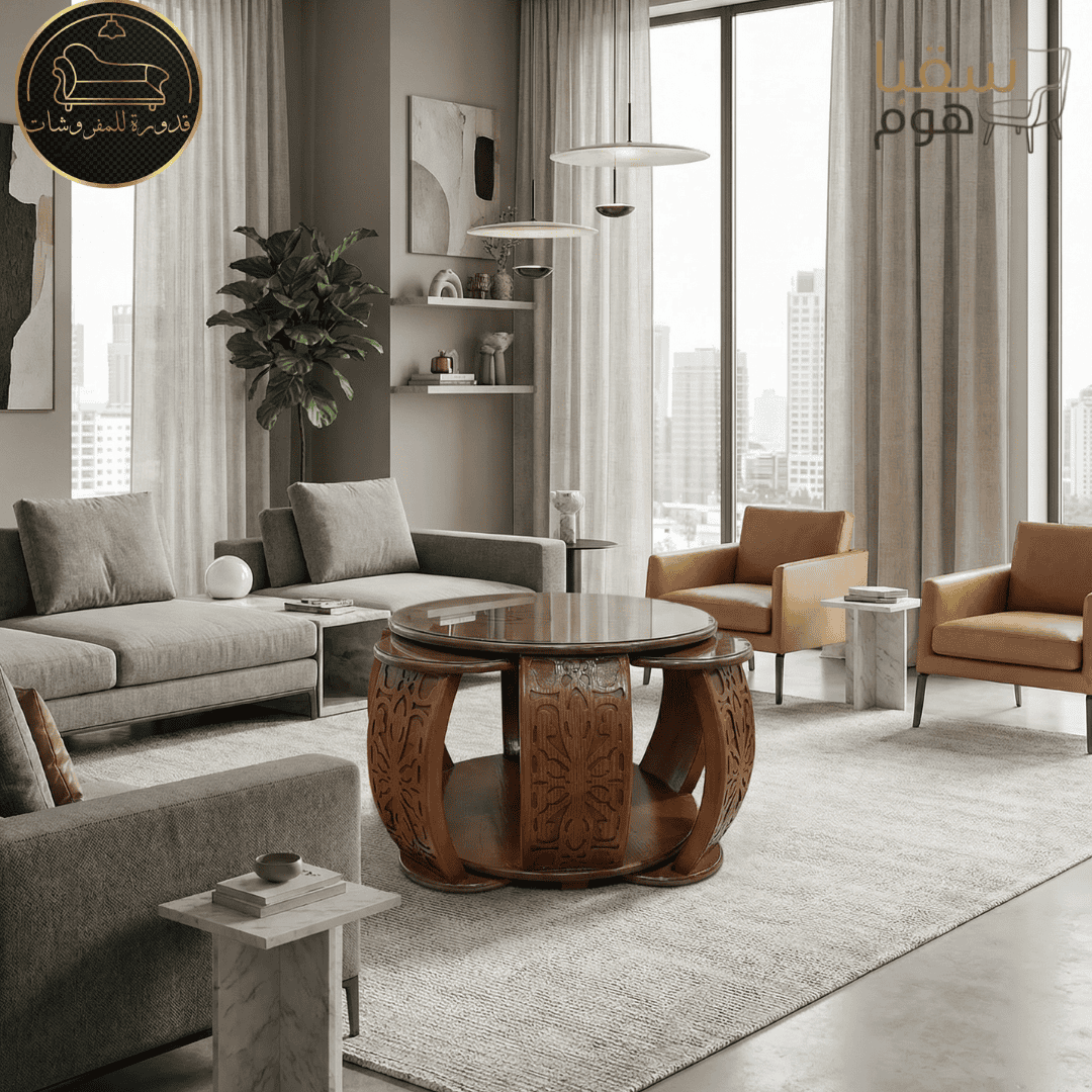 لقد استوحينا أرجل الطاولة المنحنية من الفن الكلاسيكي العريق، ودمجناها مع خطوط خشبية مستقيمة وعصرية لنقدم لك تصميماً ‘نيوكلاسيك’ يناسب كافة الأذواق. استخدام خشب الجوز الدافئ يمنح غرفتك لمسة من الطبيعة والسكينة، بينما توفر الأدراج الواسعة حلولاً ذكية للتخزين، مما يجعل مساحتك دائماً أنيقة ومنظمة.”