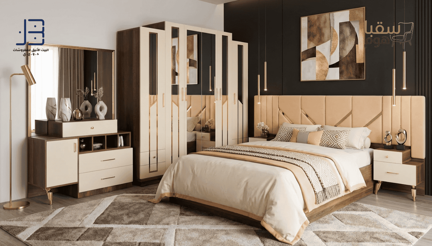 التفاصيل الهندسية الراقية، تشطيبات الخشب الطبيعية، وتناسق الألوان الهادئة تجعل هذه المجموعة الاختيار الأمثل لمن يبحث عن غرفة نوم تجمع بين الرفاهية والدفء والذوق الرفيع.