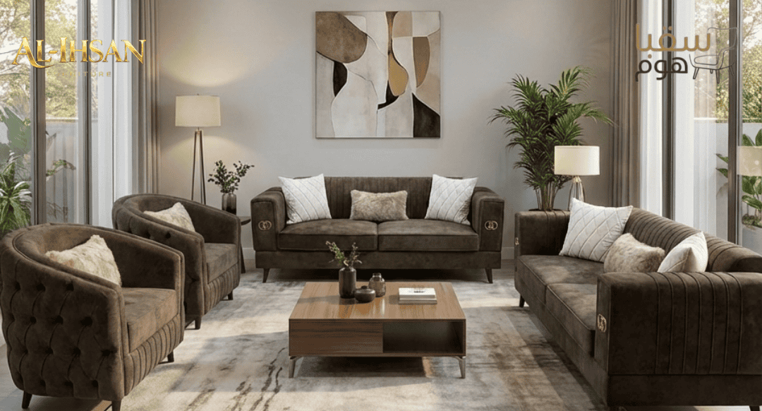 استمتع بأجواء الفخامة والراحة مع مجموعة “موديرنا “. هذا التصميم الفريد يجمع بين الأناقة الحديثة واللمسات الكلاسيكية، حيث يبرز استخدام الألوان الطبيعية مثل البني الفاتح والبيج، مع تفاصيل أنيقة تضفي لمسة خاصة على المكان.